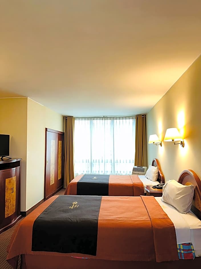 The room features a TV with a private bathroom.